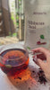 Añade una cucharadita (2 g aprox.) por taza. Vierte agua hirviendo a 100 °C y deja reposar entre 7 y 10 minutos para que las especias liberen todo su aroma y sabor. Para un delicioso Hibiscus Chai Latte, prepárala más concentrada y añade leche caliente y espumosa.