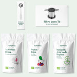 Los tés detox son tés o infusiones con ingredientes que ayudan a mejorar la pérdida de peso y eliminar toxinas, ayudando a depurar el cuerpo y hacernos sentir mejor. En este pack encontrarás algunos de los tés con más potencial antioxidante y 100% ecológicos + filtro infusor de acero inoxidable: